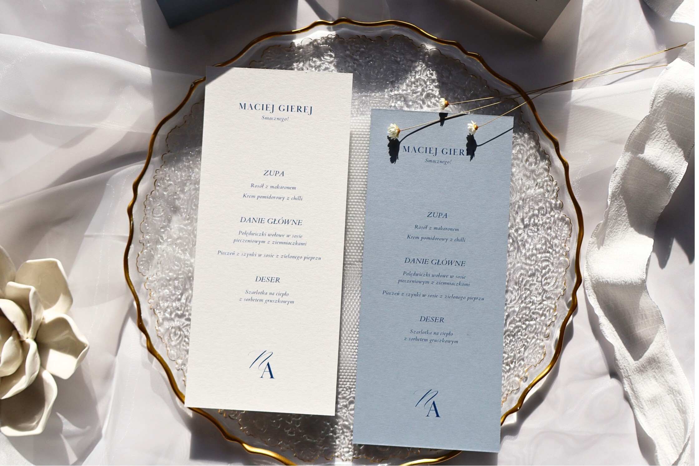 Otrzymacie od nas plik Excel, w którym wypełnicie imiona i nazwiska swoich gości, a także pozostałe szczegóły dotyczące uroczystości. Na podstawie tych informacji prześlemy Wam wizualizację menu, a po zaakceptowaniu przez Was projektu, przystąpimy do jego realizacji.