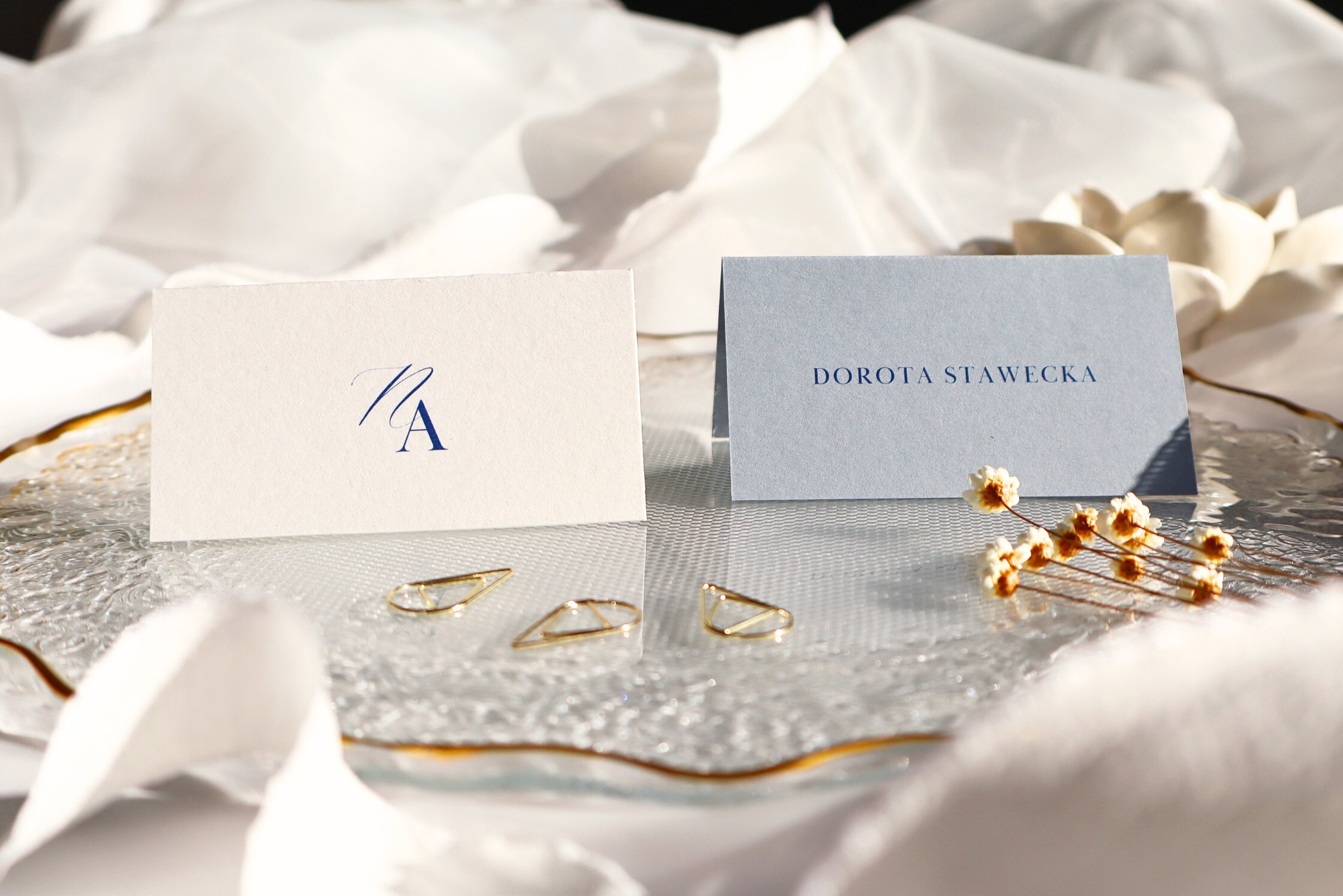 Winietka weselna z bigowaniem do postawienia na stole weselnym. Winietki z tej kolekcji drukujemy na fakturowanym papierze premium o gramaturze 300g w odcieniu delikatnej śmietanki i pastelowego błękitu. Obydwie w rozmiarach 90x50mm (przód z imieniem i nazwiskiem gościa). Zamawiając winietki z tej kolekcji możecie wybrać jeden kolor papieru lub dowolnie mieszać je według własnego uznania.